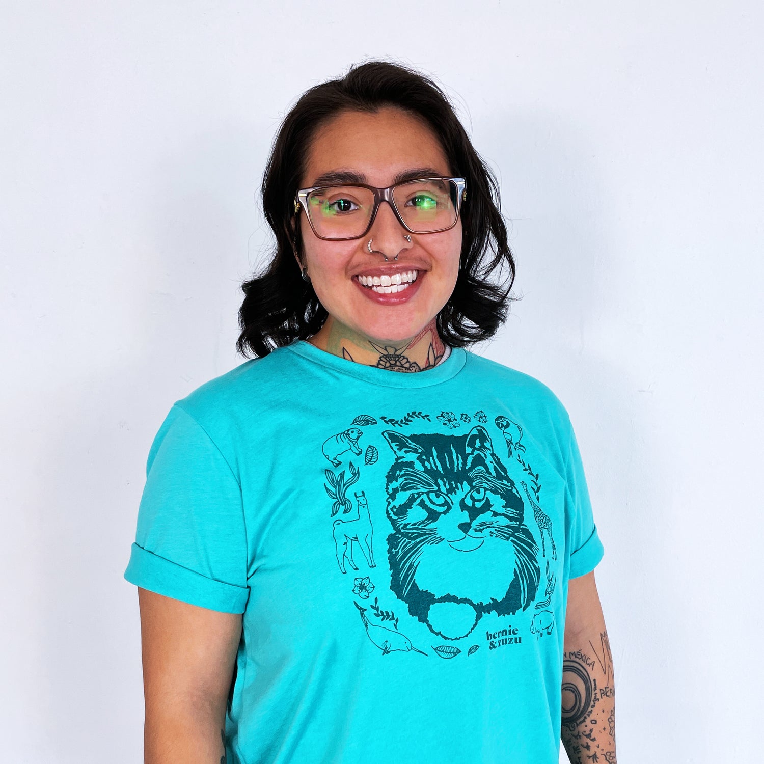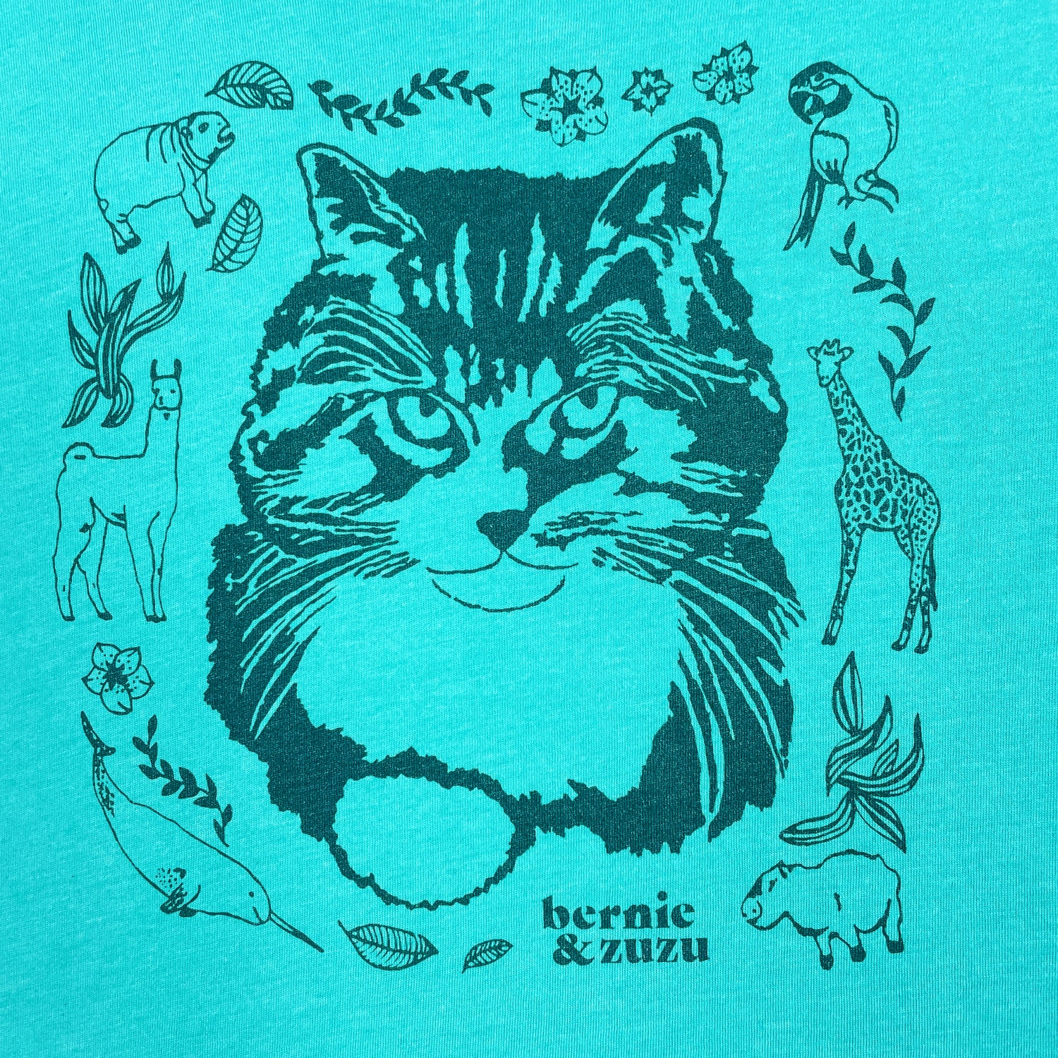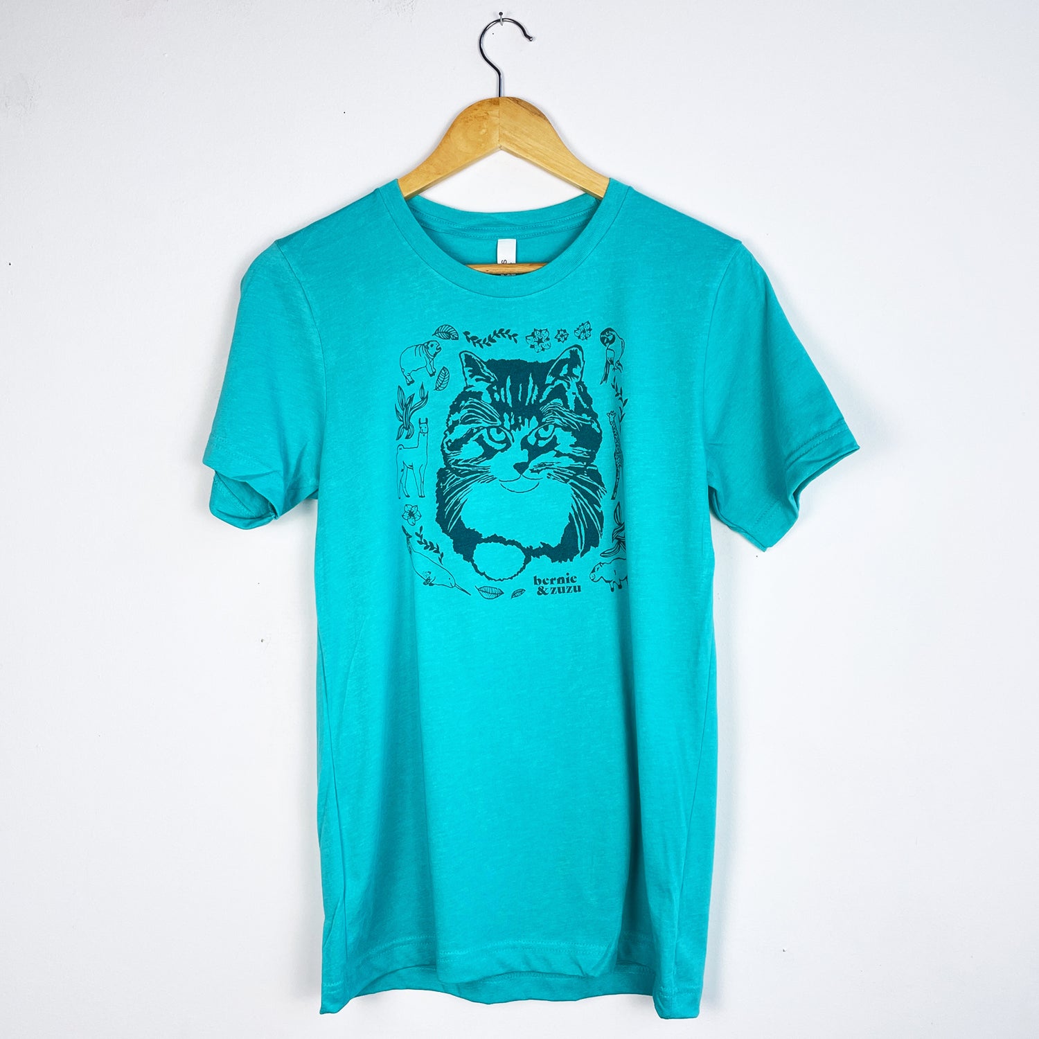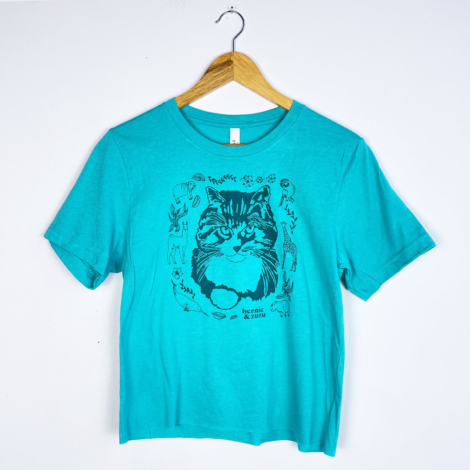 The design features a bright teal ink on a seafoam colored t-shirt. Hand screen printed on super soft, lightweight 52% cotton and 48% polyester, Bella + Canvas t-shirts. Bella + Canvas shirts are sweatshop free and made in the United States using an eco-friendly process.