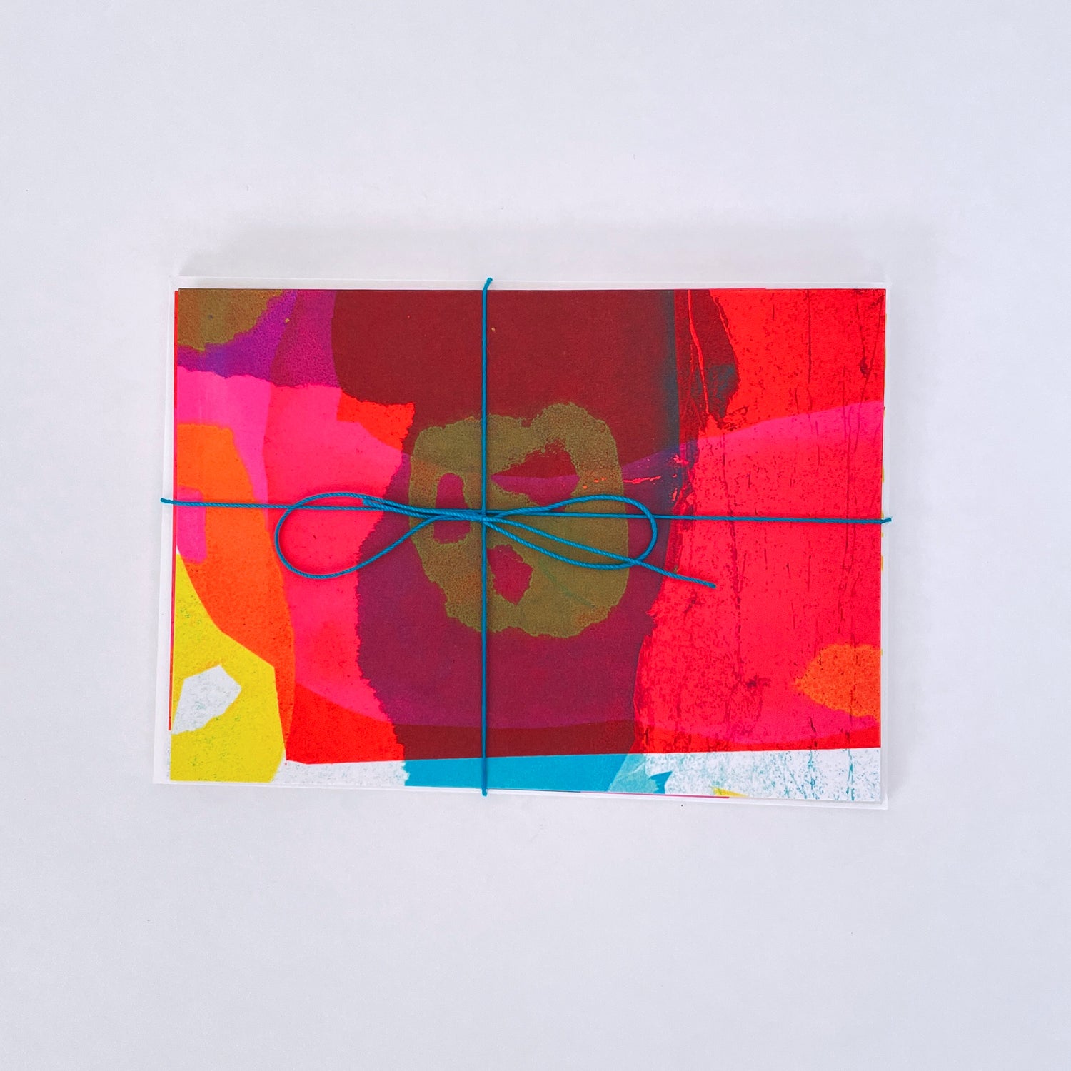 Snail mail is totally in! This set of 4 greeting cards features a saturated palette of fiery colors and wild shapes. The cards are created from handmade bernie & zuzu screen prints that were scanned in to the computer and printed digitally.
