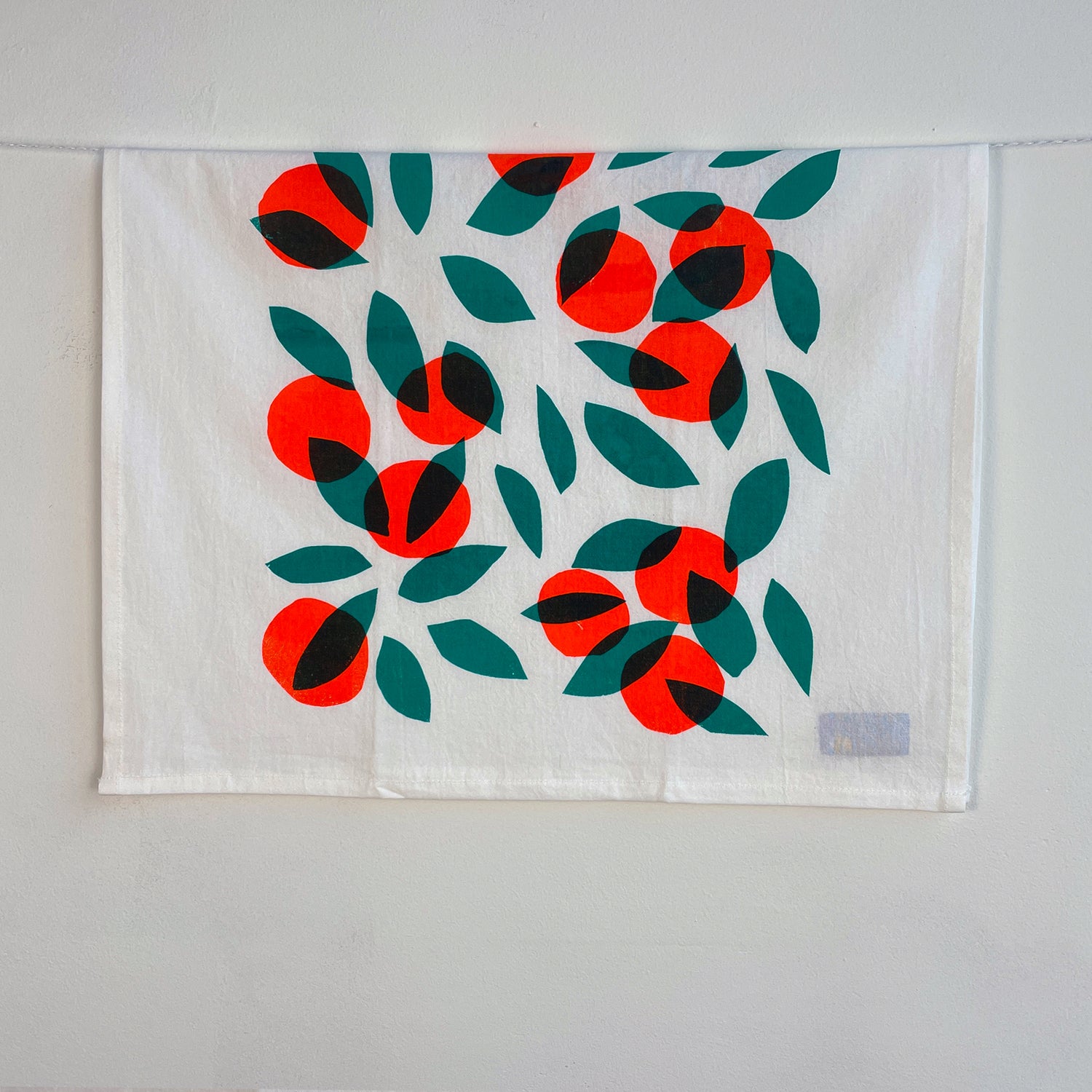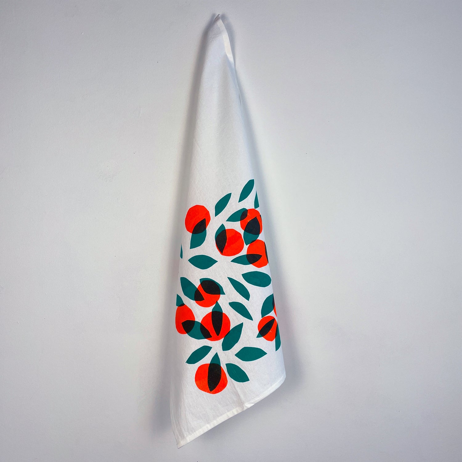 Inspired by winter citrus, this juicy Orange Tree Tea Towel will brighten up your mornings! Perfect holiday gift or hostess gift! This design features a bright orange and teal green layer.